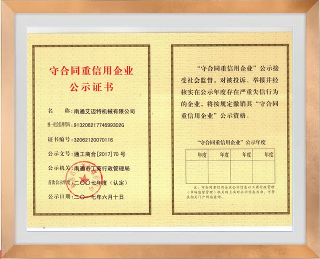 : 守合同重信用企業(yè)公示證書